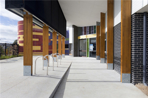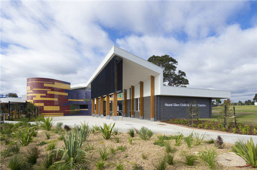 Hazel Glen兒童家庭中心使用釉磚拼圖創(chuàng)造出一種有活力的效果,加上豐富的木材表達,共同構(gòu)筑一個熱情的家庭中心。這個藝術(shù)式的建筑包括四個兒童保育室、婦幼健康咨詢室、大小不一的活動室以及一個靈活的中心集合空間。