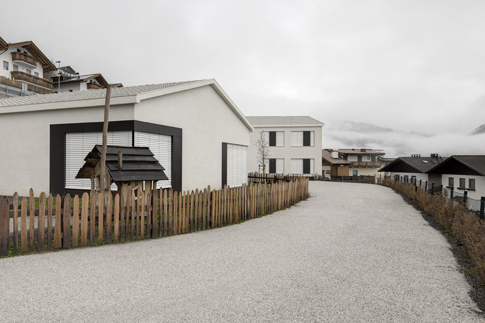 意大利Afers幼兒園和學校集成在共用一個公共大廳的兩棟建筑中。該建設項目地處高原之上,位于Afers村落中心。以粗糙白色外墻,黑色窗框,坡屋頂的現代簡約造型低調的存在,和諧的融入山區框架和文脈。學校周邊的開放空間,以及公共大廳上方的屋頂露臺均用作兒童游樂場與運動區。