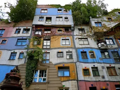 由藝術(shù)家改行為建筑師的佛登斯列·漢德瓦薩在好友的幫助下設(shè)計建造了百水公寓。百水公寓建于1983至1985年間,包含了一棟一層樓和一棟兩層樓的公寓。百水公寓包含了很多自然元素,樹木會在房間內(nèi)生長,樹木的枝干在船外延伸。不過這樣設(shè)計,經(jīng)過歲月的沉淀,想必會被植被慢慢吞噬。