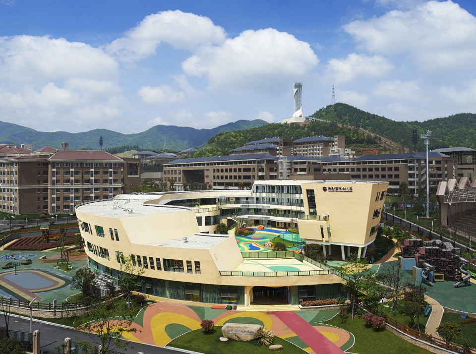 在浙江一所名為海亮國際的幼兒園是一座大型的寄宿制度的幼兒園,其中面積達到10000平方米,園內(nèi)共分為25個班,能容納五百多名兒童,對孩子們活動安全方面考慮,幼兒園在園內(nèi)選擇了一個先對平緩的一塊平地,周邊則是分別為初中、小學、體育場館、接待中心等,較為復(fù)雜和擁擠。在一個這樣復(fù)雜的環(huán)境下如何去給孩子們?nèi)?chuàng)造一個具有安全感,符合孩子們心理的歡樂場所,這成為了設(shè)計師的主要挑戰(zhàn)。