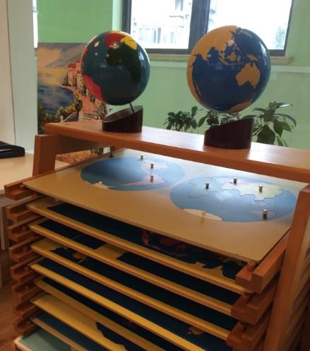 文化區(qū)則會有一些文化類的教具,比如世界地圖拼圖,孩子可以通過自己獨(dú)特的方式將世界地圖拼起來,在這個過程中了解一些基本知識。