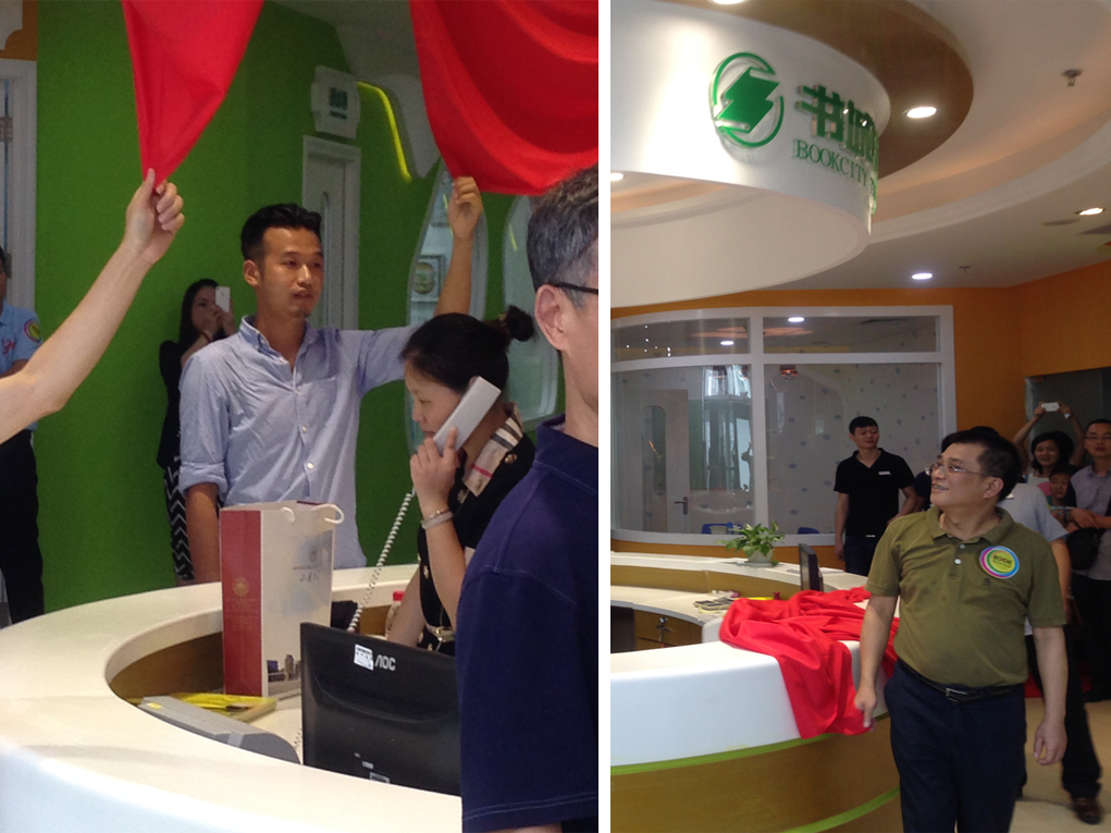 2014年7月12日上午11:00,深圳書城培訓南山書城旗艦店正式升級啟航,在南山書城5樓舉行了隆重的揭牌儀式。書城培訓南山書城旗艦店是書城培訓轉型以后打造的第一家針對于青少年為主的形象店。公司設計總監賀維,創意總監朱行奇應邀參加開業典禮,設計總監賀維并被邀請參加了揭牌儀式。項目設計效果得到了領導的高度認可和家長學生們的贊賞。
